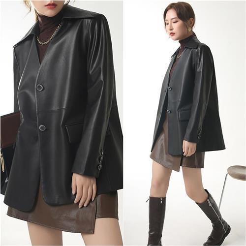 【巴黎精品】現貨+預購 頂級真皮西裝外套真羊皮皮衣秋冬風衣夾克休閒女裝-真皮無領西服女外套2色a1le27