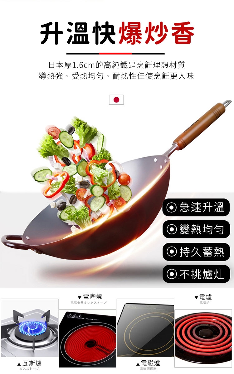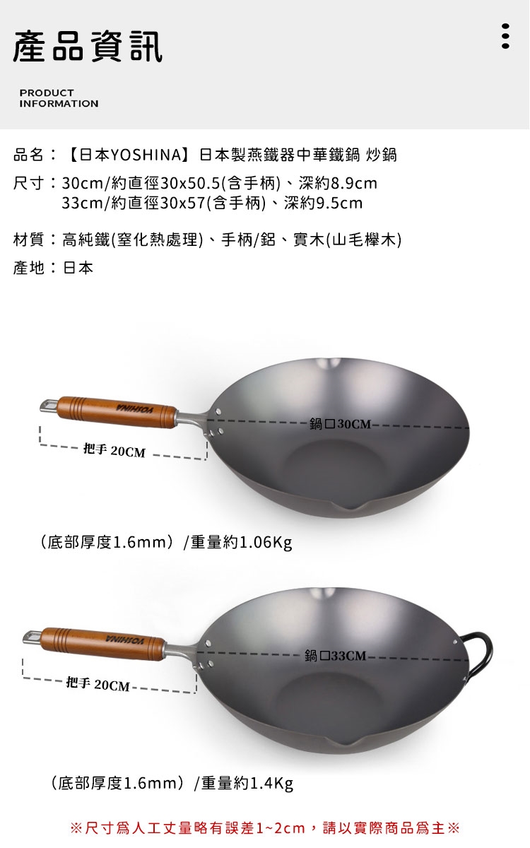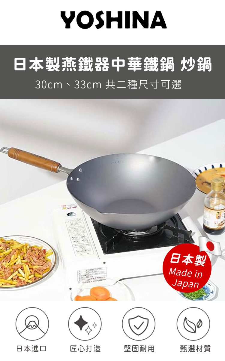品名:【日本YOSHINA】日本製燕鐵器中華鐵鍋 炒鍋