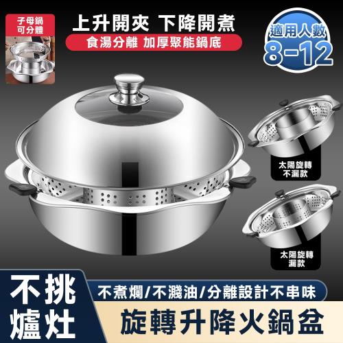 鴛鴦鍋 火鍋 清湯鍋【旋轉升降火鍋 子母雙味】不鏽鋼火鍋盆 子母鍋 商用火鍋盆 雙享鍋 附蓋子