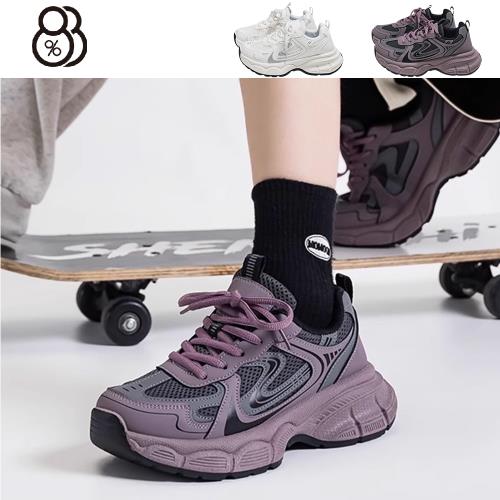 【88%】加大尺碼36-42 厚底4.5cm老爹鞋 網面透氣 拼接潮鞋 跑步鞋 時尚休閒運動鞋 2色