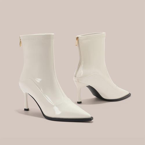 Sp house 性感拼接尖頭復古歐風拉鍊顯瘦高跟短靴(3色可選)