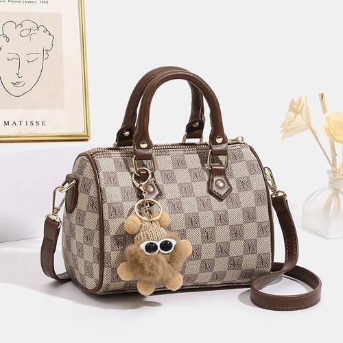 Sp house 復古格紋女款手提側肩斜背包波士頓包(卡其色)