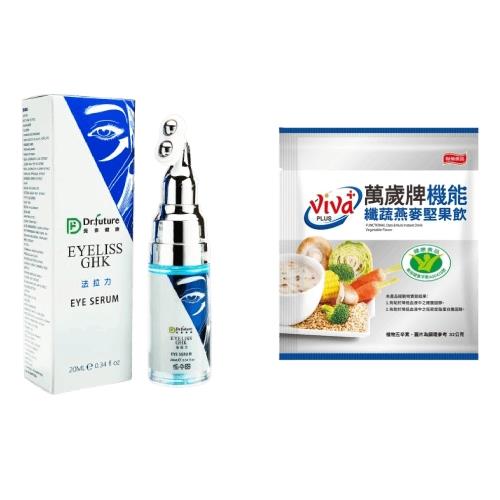 【1+1抗漲配】Dr.future長泰法國專利小藍瓶電眼精華+萬歲牌健康食品認證纖蔬燕麥堅果飲