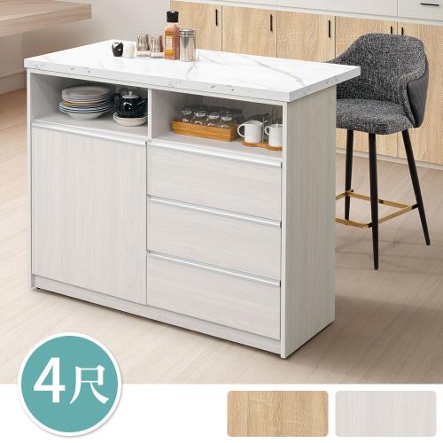 Boden-利奇4尺中島型吧台桌+餐櫃/多功能收納餐桌櫃/工作桌/收銀櫃檯桌(兩色可選)