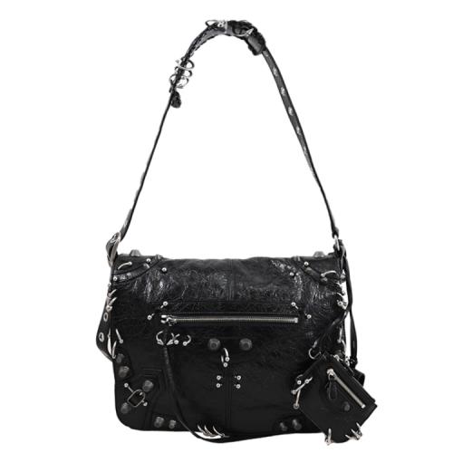 BALENCIAGA 719093 Le Cagole 鉚釘環翻蓋大斜背包.黑-附耳機套+零錢包