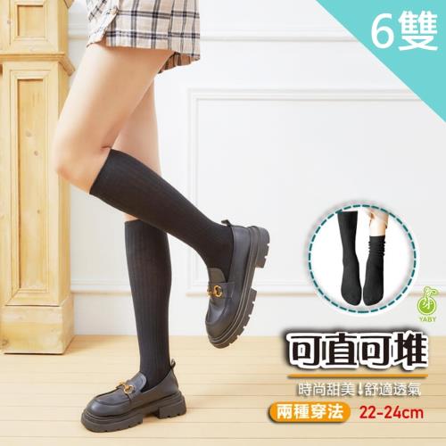 【YABY芽比】韓版半統襪6雙組(學生襪 膝下襪 女襪 休閒襪 中統襪)