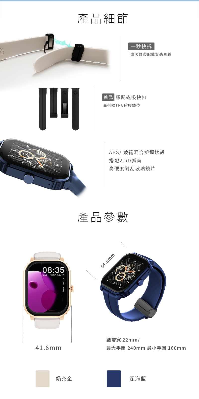 心率血氧藍芽通話手錶深海藍*1支/奶茶金*1支(可體驗)