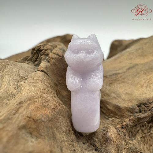 【肌容雪】天然緬甸A貨紫色翡翠貓咪造型戒圈 編號112