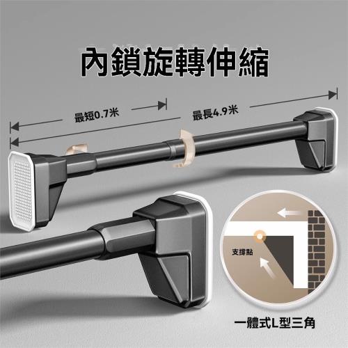 【Secaii設彩品牌店】新升級按壓式伸縮桿 伸縮晾衣桿 浴簾桿 自由伸縮 撐桿 防滑底座/無需打孔/防水防鏽 【新升級灰色杆】1.0-1.7米