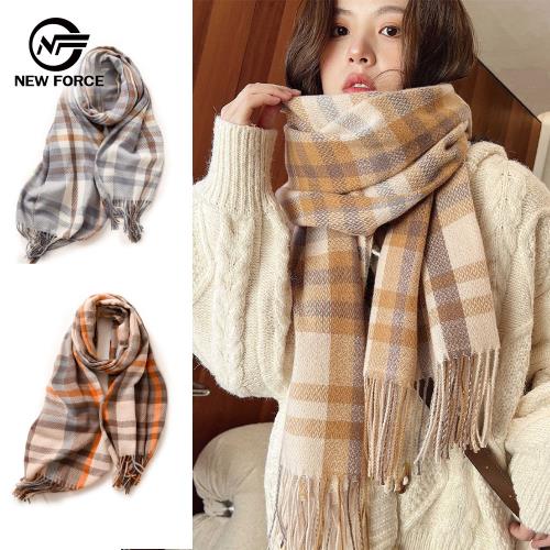 NEW FORCE 任選-輕奢格紋保暖大披肩圍巾-多色可選