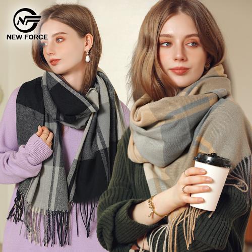NEW FORCE 任選-雜誌風格紋保暖大披肩圍巾-多色可選