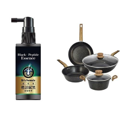 【1+1抗漲配】台塑生醫黑曜濃髮胜肽精華+日本雨文堂羽墨高碳鋼不沾鍋具組(TV)
