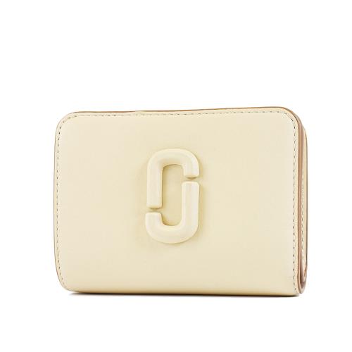 MARC JACOBS 專櫃款 雙J LOGO滑面牛皮拉鍊短夾-雲白