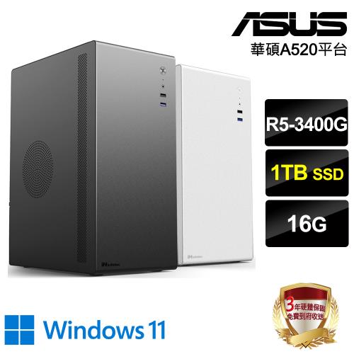 |華碩A520平台|R5-3400G/16G/1TB SSD/Win11進階電腦(2色可選)