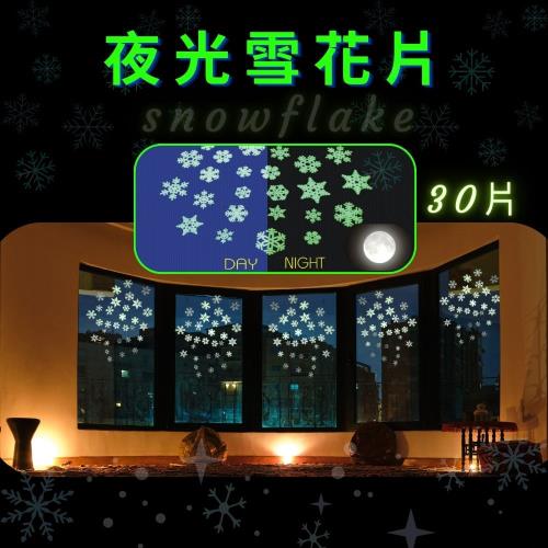 GS金德恩-台灣製造 買一送一 一組30入 夜光小雪花片 裝飾牆貼 車貼 下雪 窗貼 壁貼 玻璃貼 造型貼 車窗貼