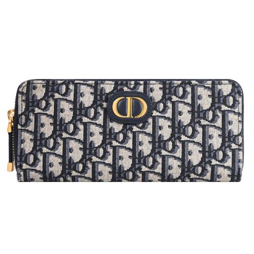 Christian Dior 30 Montaigne Voyageur 滿版緹花ㄇ字拉鍊長夾.深藍