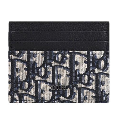 Christian Dior Oblique 浮雕LOGO滿版緹花六卡隨身卡夾.深藍/黑