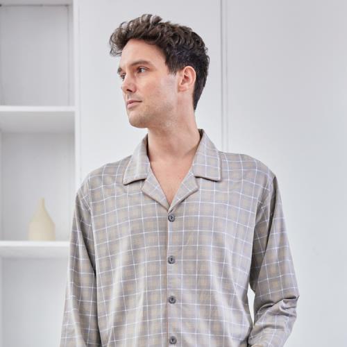 GOLDDEER金鹿 - 雅士質感中格入秋款長袖褲裝睡衣-咖【M5443】