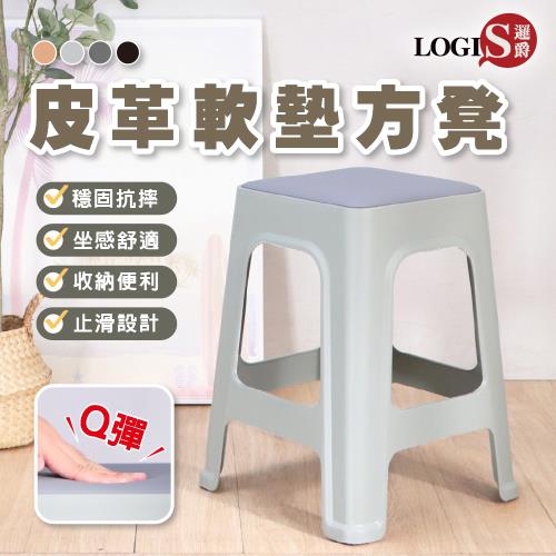 LOGIS邏爵家具-皮革軟墊方凳 塑膠椅 餐桌椅 椅子 4入【PST-HX4】