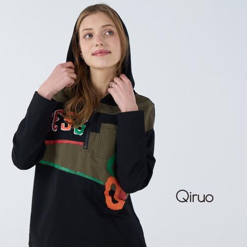 【Qiruo 奇若】秋冬專櫃長袖黑色連帽上衣 7023A 休閒上衣