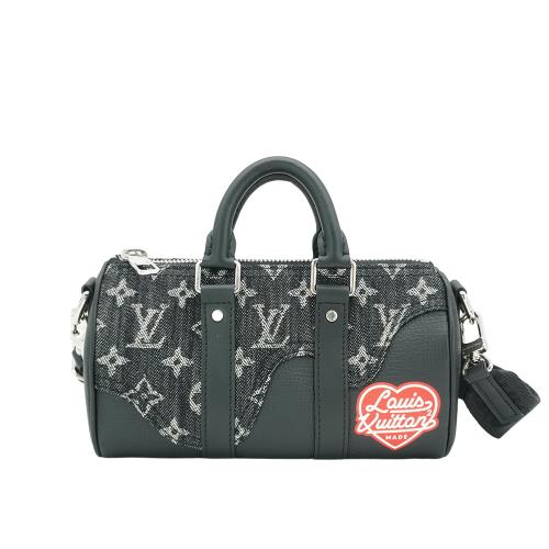 Louis Vuitton Nigo Keepall XS 愛心塗鴉牛仔布拚牛皮二用斜背包(M81010-黑)