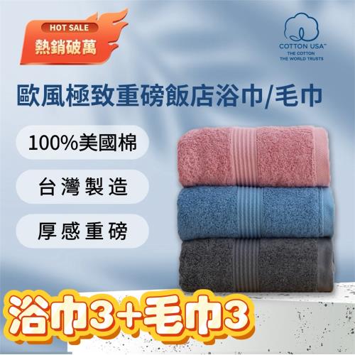 HKIL-巾專家 MIT歐風極緻厚感重磅飯店彩色棉巾系列-浴巾x3+毛巾x3
