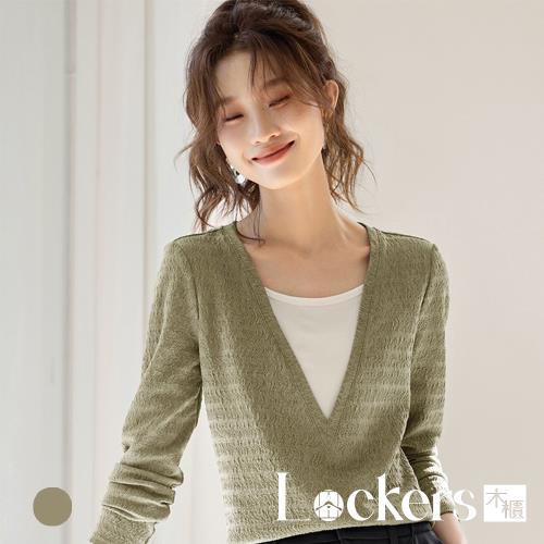 【Lockers 木櫃】V領撞色假兩件拼接T恤 L114103106