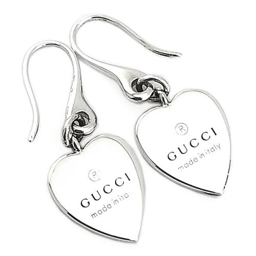 九五成新展示品-半價出清-GUCCI 925純銀-刻字愛心墜飾吊飾耳環