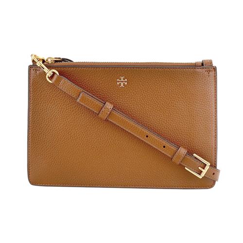 【TORY BURCH】皮革雙層拉鍊斜背包-焦糖