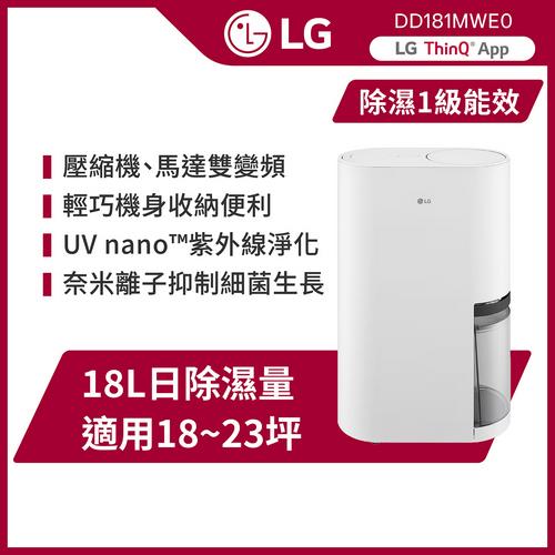 贈鴛鴦鍋↘【LG 樂金】PuriCare 18公升雙變頻除濕機 白 (DD181MWE0)