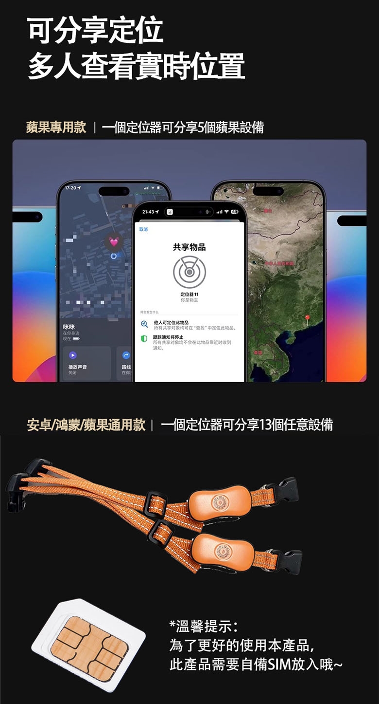 場景使用:寵物佩戴時須確保掛件牢固;兒童老人使用時需家長監護
