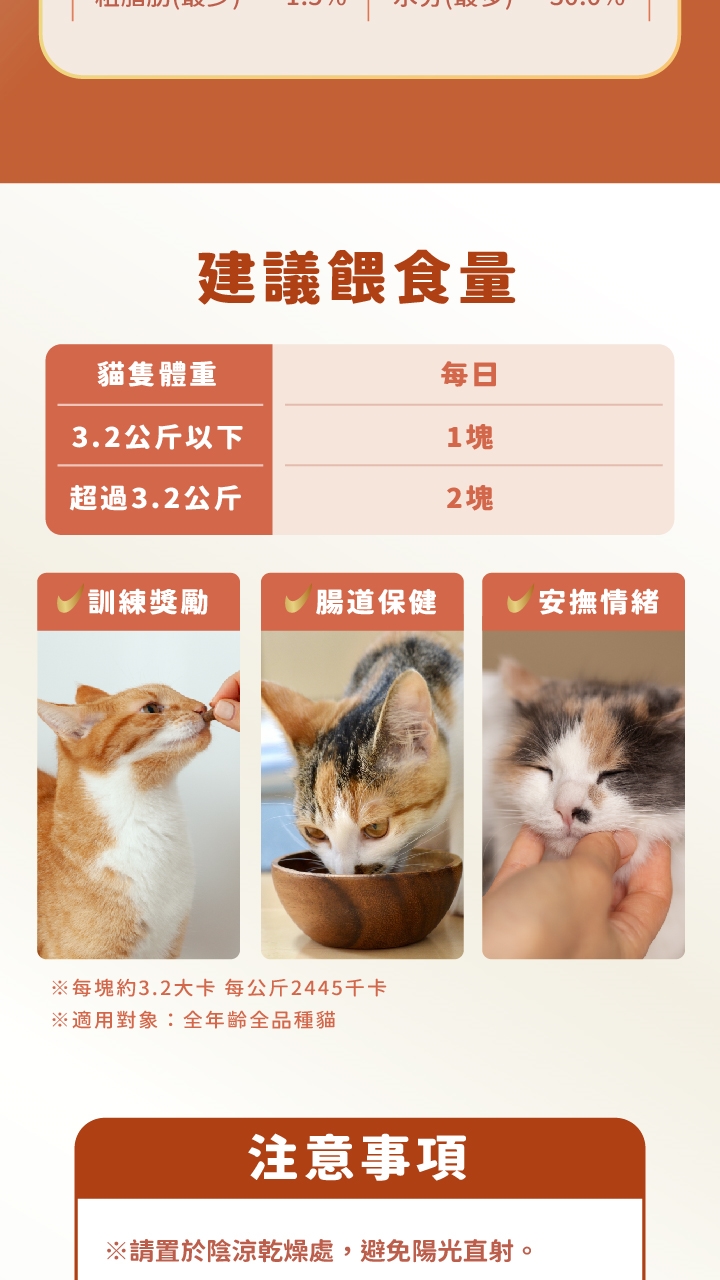 若貓咪不慎過量食用,請立即諮詢獸醫師。