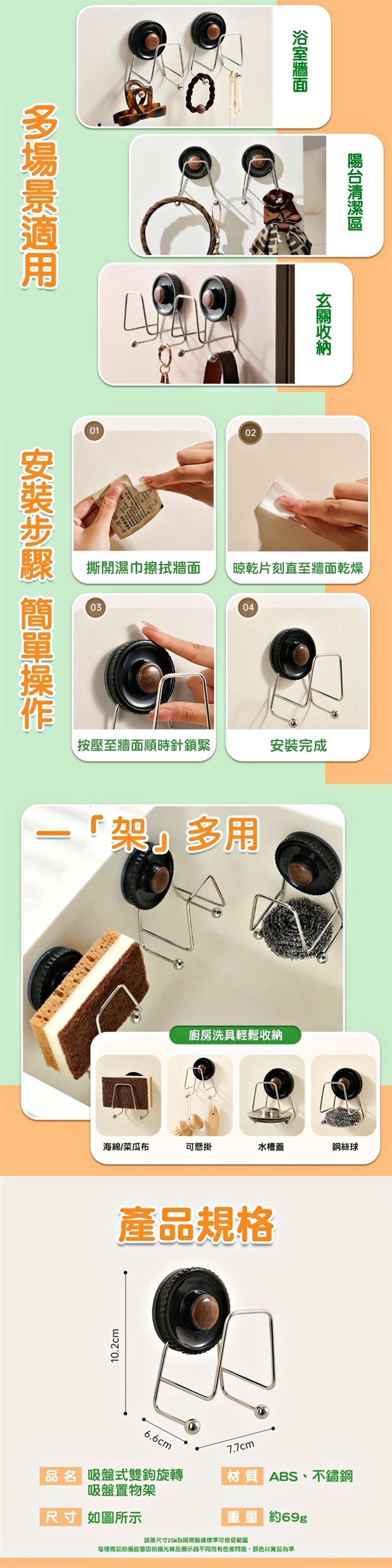 品名:吸盤式雙鉤旋轉吸盤置物架