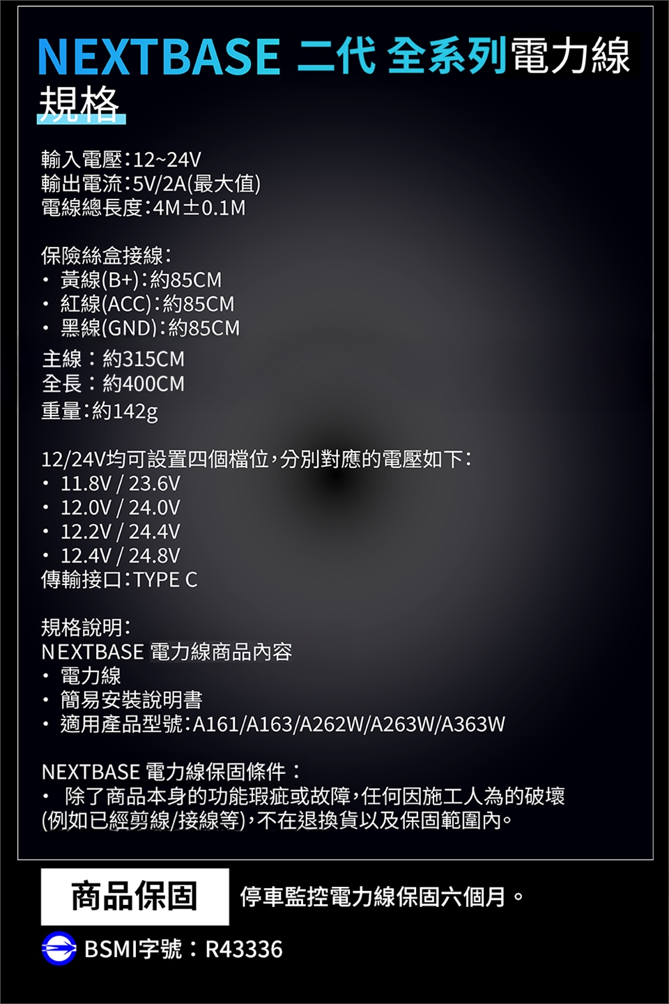 * 限搭配 NEXTBASE A16X/A26X/A36X系列適用