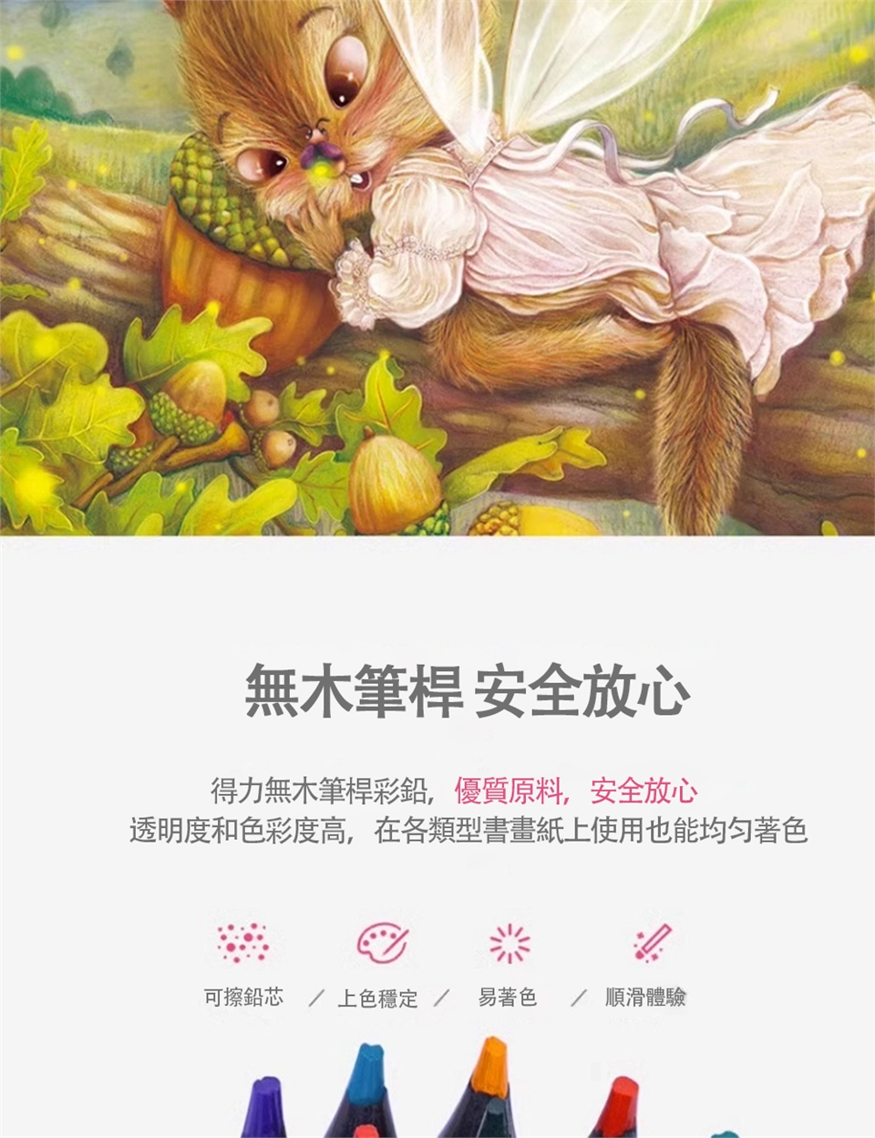 - 彩色鉛筆:24 色可擦款,筆芯飽滿易上色