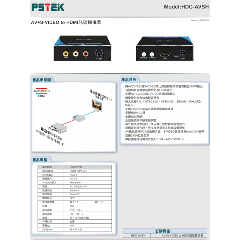 ∙將AV(CVBS)或S-VIDEO類比訊號轉換成高畫質數位HDMI輸出,且類比音源轉換成數位影音HDMI輸出