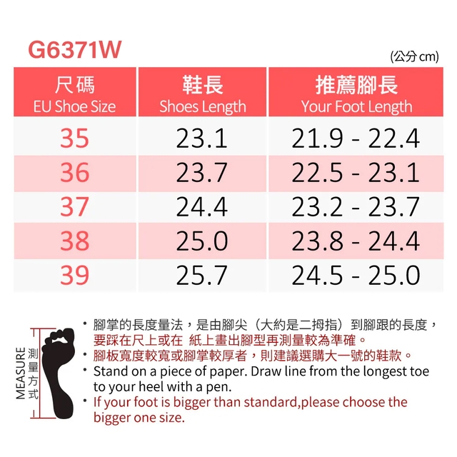 量一下自己的腳長和腳寬
