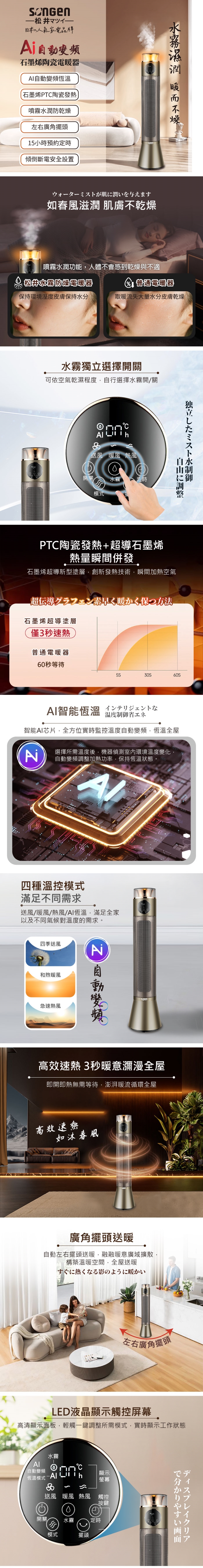 加熱類型:PTC陶瓷發熱體+石墨烯塗層