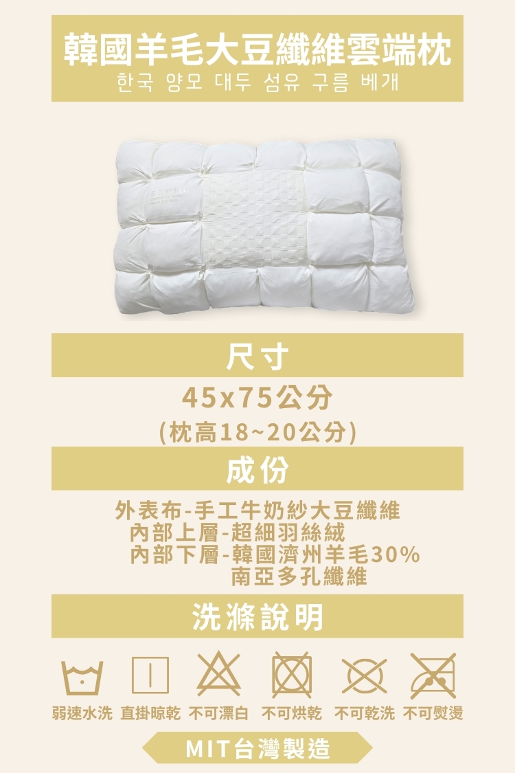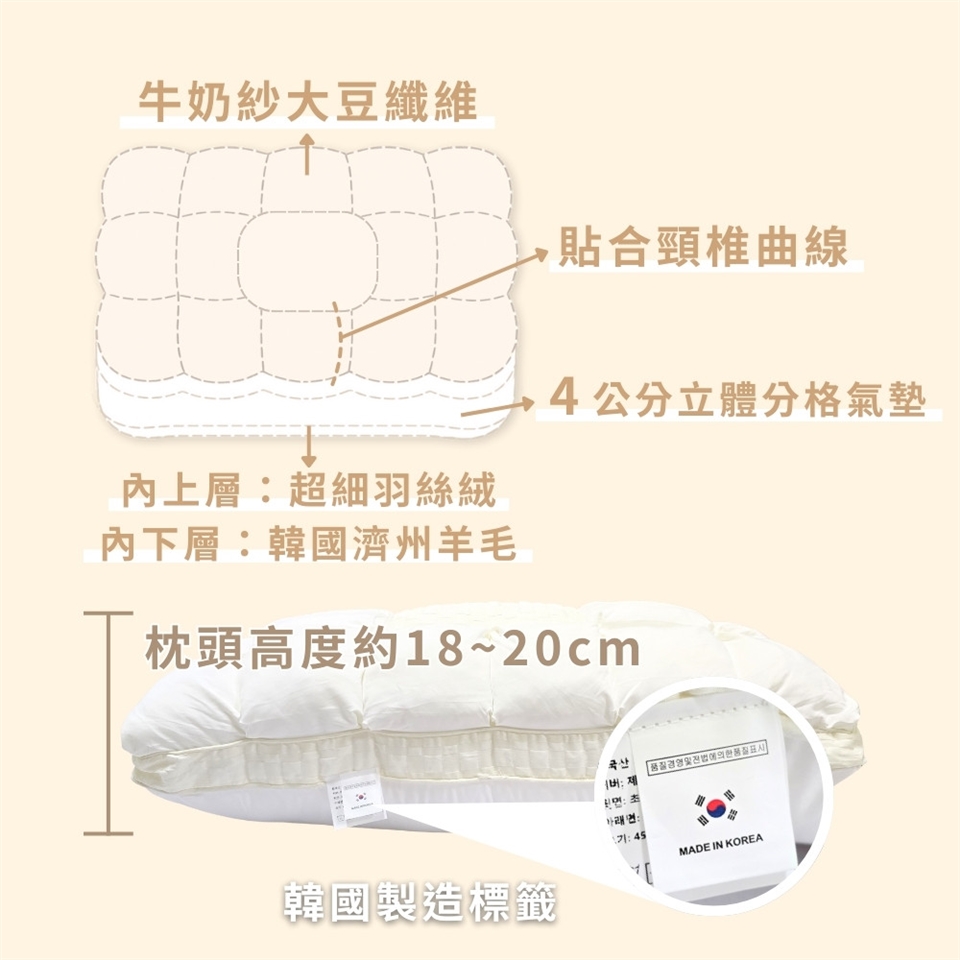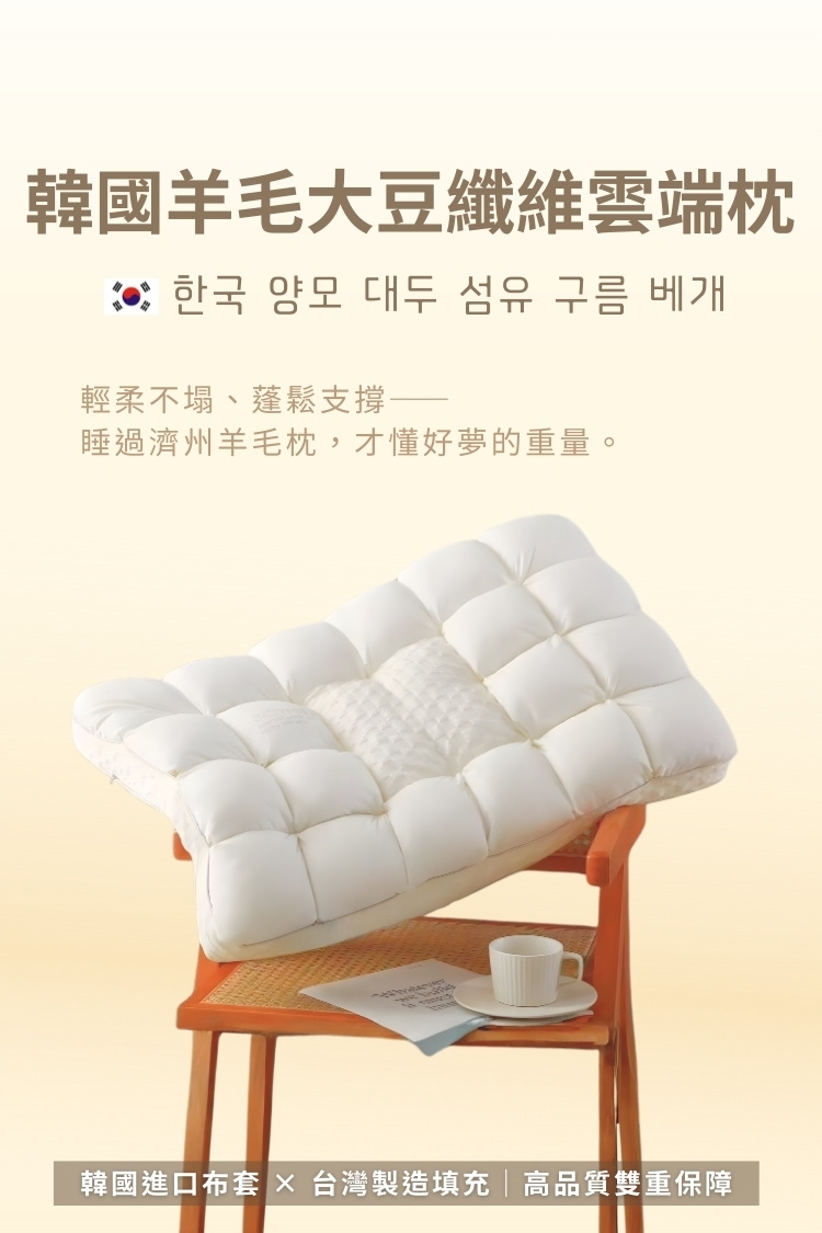 商品:韓國羊毛大豆纖維雲端枕1入