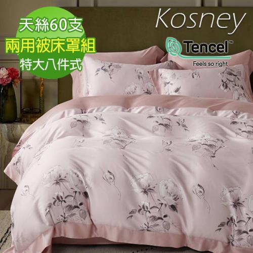 KOSNEY 蘭芳粉 頂級特大60支100%天絲TENCEL八件式兩用被床罩組