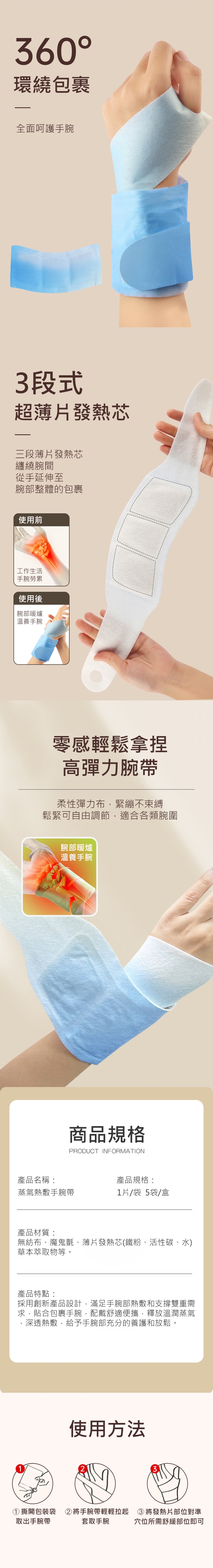 三段式發熱 釋放溫潤蒸氣,深透熱敷,給予手腕充分的養分和放鬆