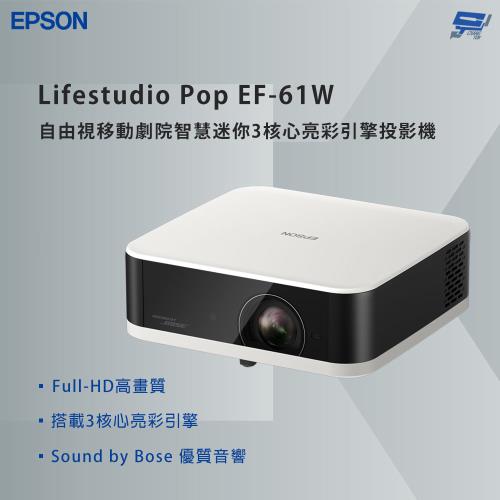昌運監視器 EPSON 愛普生 Lifestudio Pop EF-61W 智慧迷你3核心亮彩引擎投影機- 古典白