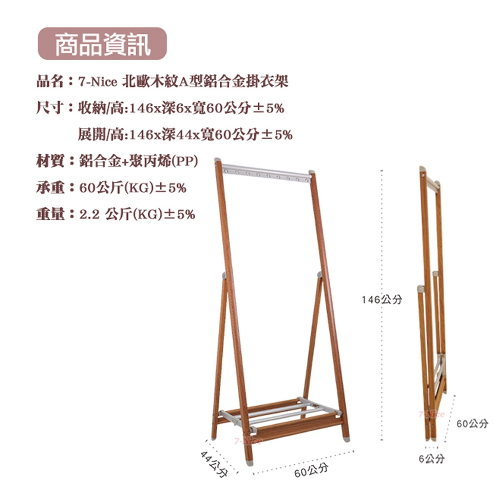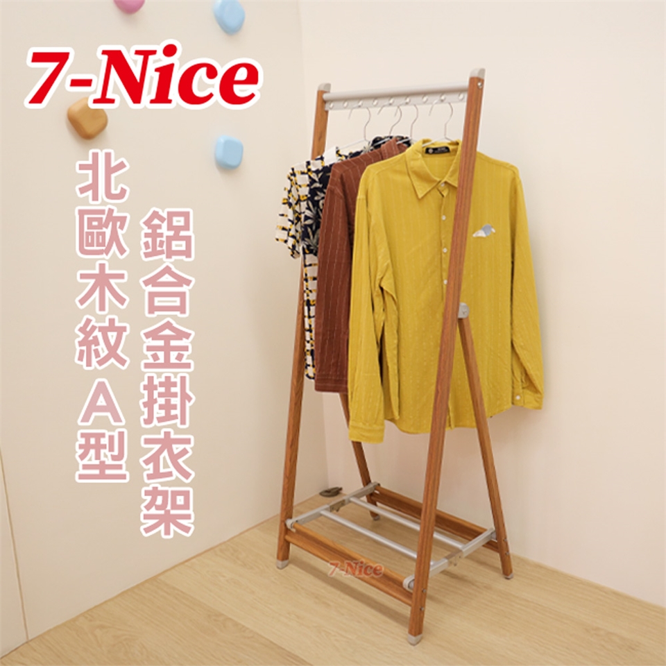 名稱:7-Nice北歐木紋A型鋁合金掛衣架