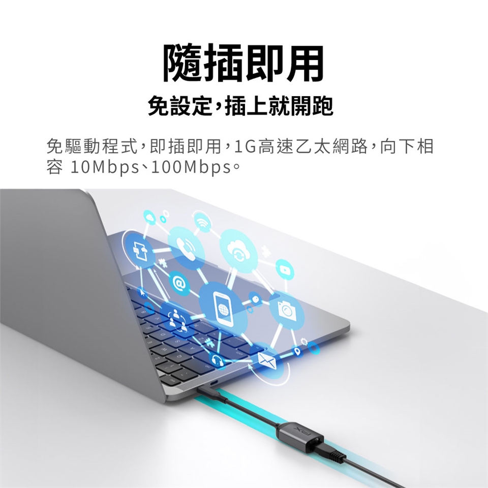*即插即用 支援1G乙態網路,向下相容10Mbps、100Mbps
