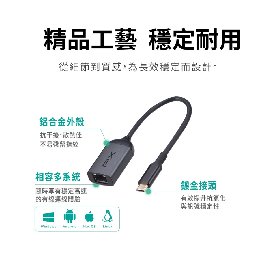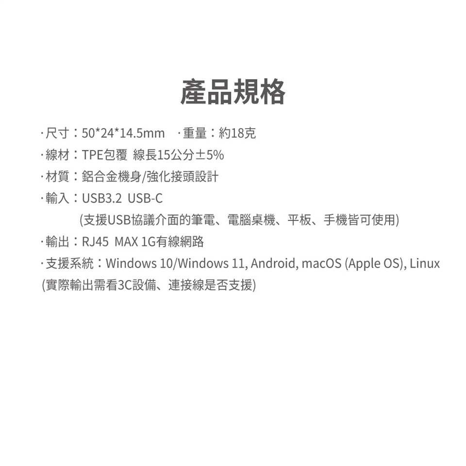 包裝內容物:USB-C 高速網路轉接器、保固小卡