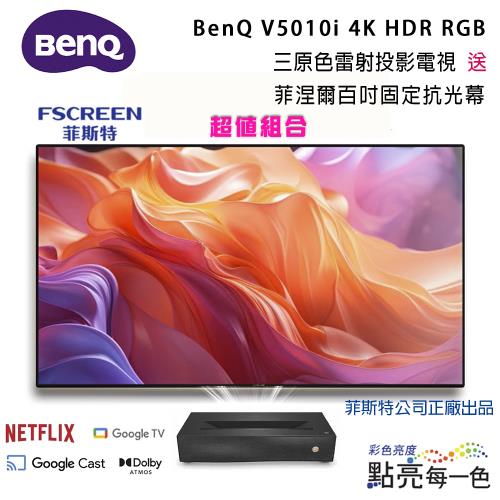 BenQ V5010i 4K HDR RGB 三原色雷射投影電視(贈送菲涅爾百吋固定抗光幕含安裝)
