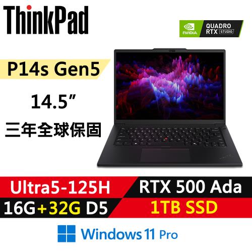 (規格升級)Lenovo聯想ThinkPad P14s Gen5行動工作站Ultra5 125H/16G+32G/1TB/RTX 500 Ada 4G