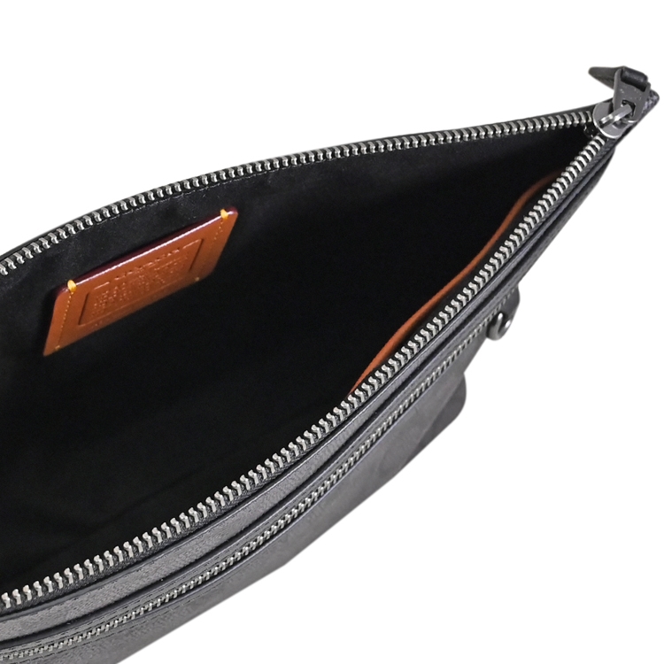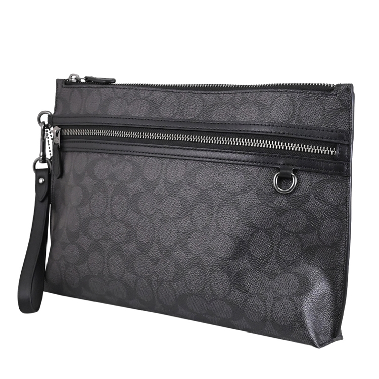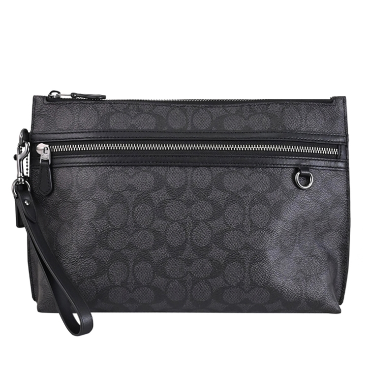 COACH CARRY ALL POUCH系列,採用滿版印花塗層帆布製作而成,拉鍊開口安全收納,附手掛帶