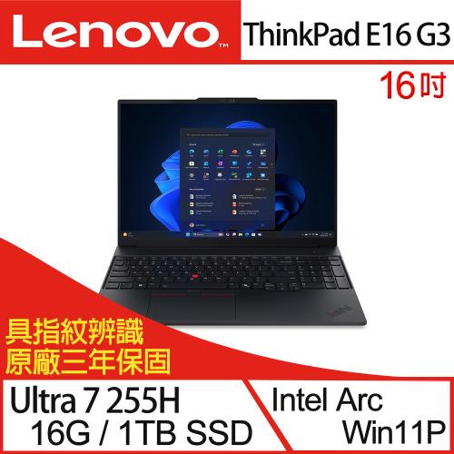 Lenovo聯想 ThinkPad E16 Gen 3 16吋 商務筆電 Ultra 7 255H/16G/1TB SSD/W11P 三年保
