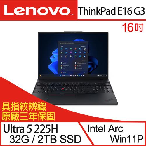 (規格升級)Lenovo聯想 ThinkPad E16 Gen 3 16吋商務筆電 Ultra 5 225H/32G/2TB SSD/W11P 三年保